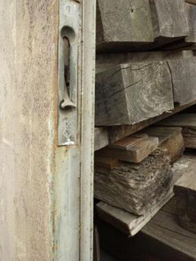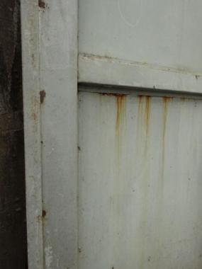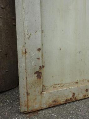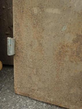 観音開きのドアです。扉の側面のでっぱりを含めると横幅は813mmです。 もう一枚の在庫は写真掲載のものよりも下部の傷み具合が強いです。