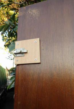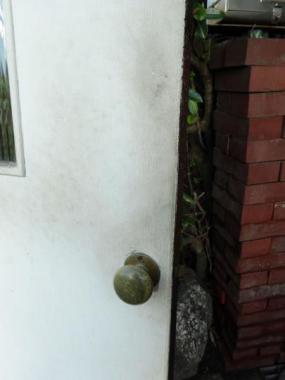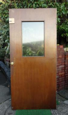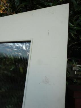 片面が白く塗装されています。内側は落ち着いた色味でどんな室内とも相性がよさそうです。ガラスはモールガラスがはめこまれています。新しい内鍵がついています。