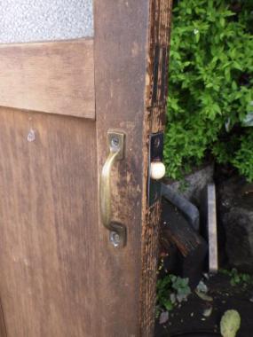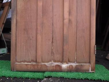 わけあり品。腰板が傷んでいるため。世田谷区の煙草屋兼曳家さんでお風呂場用のドアとして使われていたものです。