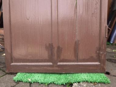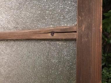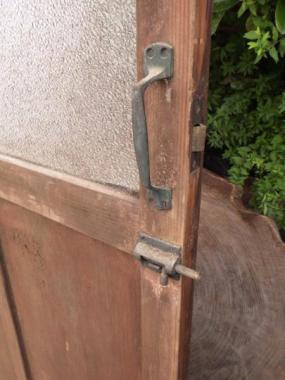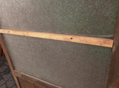 わけあり品。腰板、桟に割れあり。修理跡も見られます。ガラスはダイヤガラスが使われています。文京区のお宅で使われていたものです。