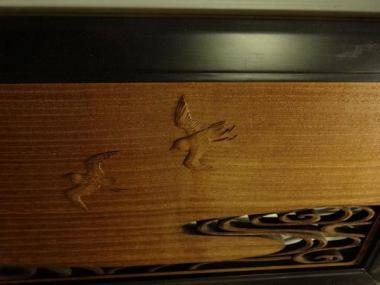 愛らしい小鳥がモチーフです。繊細な彫刻が美しい欄間です。