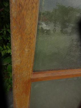 ラワン素材で明るめの色味です。一部色が剥げている箇所がございます。梨地のガラスが使われています。
