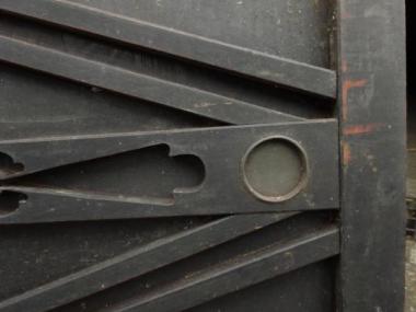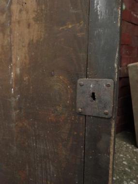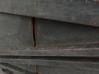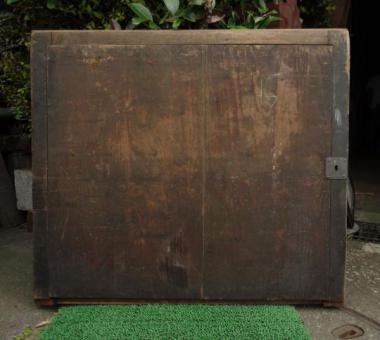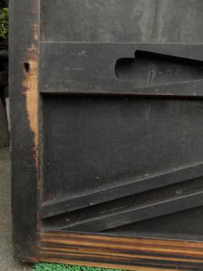 わけあり品。在庫のうち1枚は割れやゆるんでいる箇所があるため。なお、こちらの商品は組販売のみとなります。厚みのある木片によるごつっと思い切った装飾。裏面や所々に見られる退色がどことなくホッとさせられる箪笥の戸。