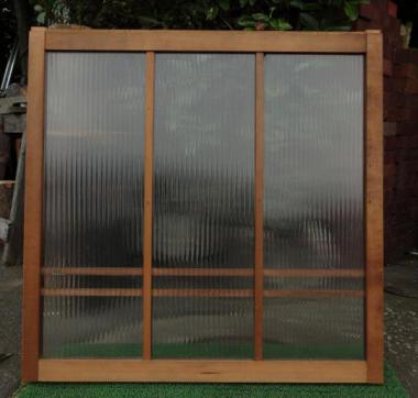 モールと木枠のデザインがどことなくモダンな雰囲気。和風の空間にはもちろん洋風の場所にも相性が良さそうです。比較的すべすべとした木肌で、手にも馴染みやすそうな窓です。