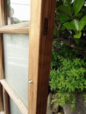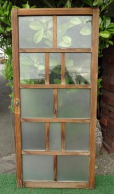 曇りガラスが下段に7枚入っています。透明ガラスは上段に5枚入っています。主張の少ないデザインですが、桟が面取りしてあるなど細やかな技術が光ります。
