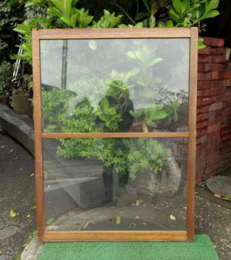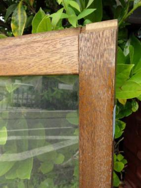針葉樹特有の点々とした木目が味わい深い窓です。おおきめのガラスで開放感があります。