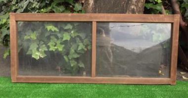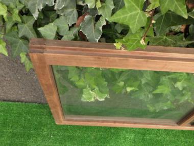 ちょこんと小さい鍵がついているのが可愛らしい窓です。古いガラスが使われており、味わいがあります。