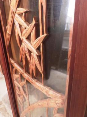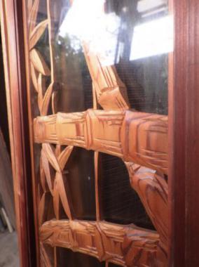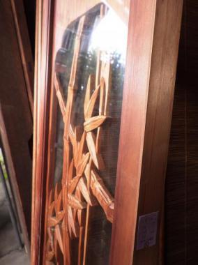竹の優美な彫刻で見応えがあります。千葉県市川市の大正時代に建てられた古民家のものです。ガラスに覆われており、彫刻自体の状態も良好です。