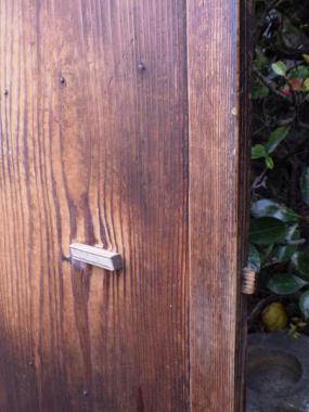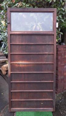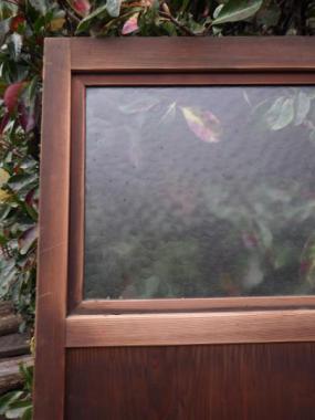 明かり窓のガラスは模様ガラスで、大変雰囲気があります。少し幅広めかもしれませんが、トイレ戸としてもご利用いただけると思います。