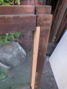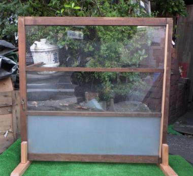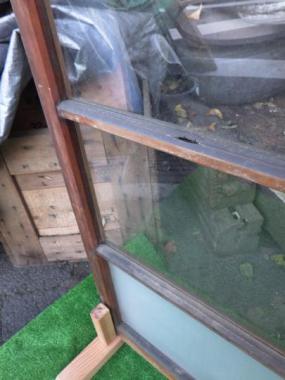 東京・亀戸の民家で使われていたものです。下段のみ、すりガラスが使われています。シンプルなので和洋問わず使いやすいデザインです。ガラスのおさえは新材で作り直してあります。