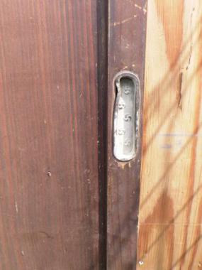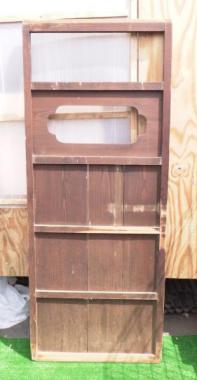 わけあり品。板枠や引き手にダメージがあるため。めずらしいデザインです。信州地方の民家で使われていたものです。シンプルなデザインですので、好みに合わせてアレンジを加えてみても良いかもしれません。