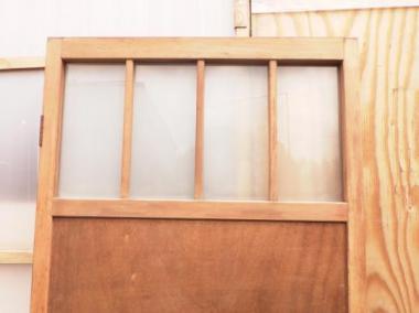 明かり窓には曇りガラスが使われています。東京の恵比寿で使われていたもので、上品な作りが特徴です。扇型の取っ手も魅力的です。