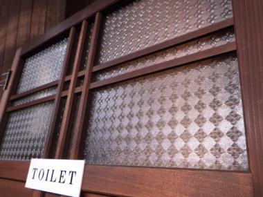 菱形模様の珍しいガラスが明かり窓として使われています。千葉県市川市の大正時代に建てられた古民家のものでレトロな意匠が目を惹きます。