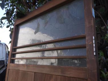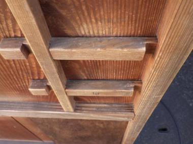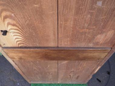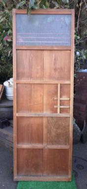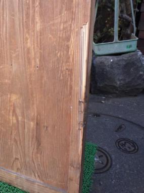 わけあり品。破損箇所があります。取っ手が不安定です。両面に補強のための板が付いています。文京区根津で使われていたものです。別途料金になりますが、修理も承れますのでご相談ください。