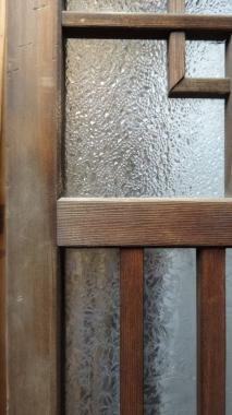 ひのきのガラス格子戸です。 高さ1,710mm×幅525mm×厚み33mmです。 二種類のガラスが使われております。 詳細お問い合わせください。