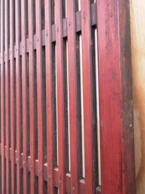 引き手が両面で別々のデザインのものを使うなど、細部にこだわりを感じます。格子は面取りしてあり上品な雰囲気です。裏面には障子紙が貼ってあります。