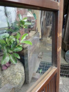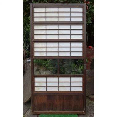 古いガラスを使っており、独特のガラスの歪みが味わえます。 腰板の模様も魅力的です。 ※スマートフォンでご覧の方は、下に表示されているパソコン表示を選択すると さらに詳細な説明をみることができます。 高さ1,745mm幅877mm厚み31mmです。 詳細お問い合わせください。