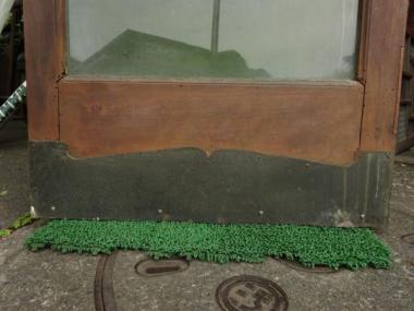 ギャラリーで使われていた戸です。下のところには銅板があり和風の味わい。すりガラス使用、材はチークです。