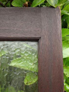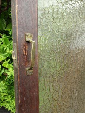 幅が狭めで、縦長にみえるので比較的スマートな印象を与える戸だと思います。厚みのある模様ガラスで重厚な雰囲気も感じられます。1420Lと対で使われていました。
