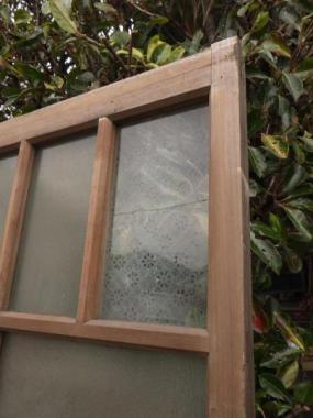 細かな網目模様のようなガラスが使われており、透けづらいです。右上と左上には、おっとりとした印象の花柄のガラスが入っていて、どこか親しみやすい雰囲気です。