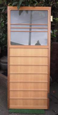 神奈川県の鵠沼海岸の民家で使われていた洗面所の戸です。曇りガラスの明かり窓がついています。