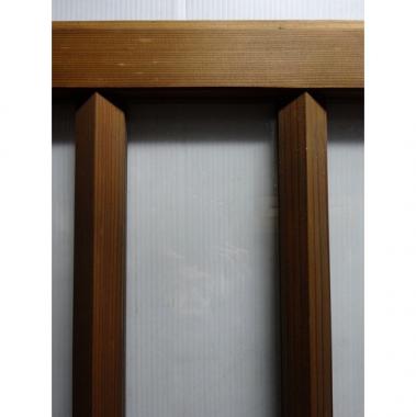 スギ材のガラス戸です。枠の縁が角張っているデザインです。 高さ1,710mm幅675mm厚み29mmです。 詳細お問い合わせください。