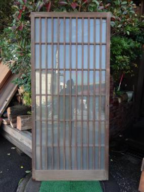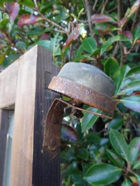 格子のガラス戸です。右上にベルのようなものが付いています。