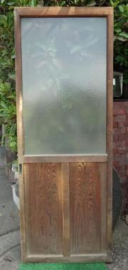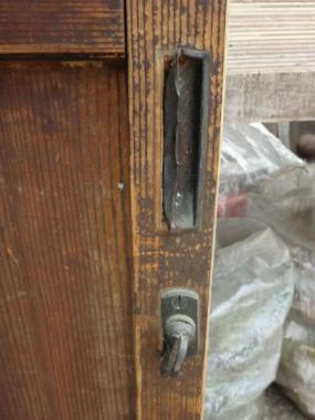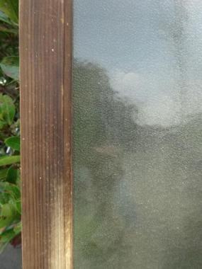 引手の一部が歪んでいます。ガラスは梨地です。板は杉です。