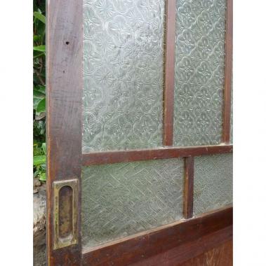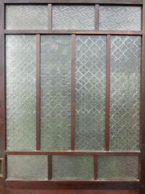 珍しい細工ガラスが使われています。一風変わった雰囲気を味わえます。石川県金沢の風情ある写真屋さんで使われていた品物です。 高さ1780mm幅863mm厚み33mmです。 詳細お問い合わせください。