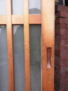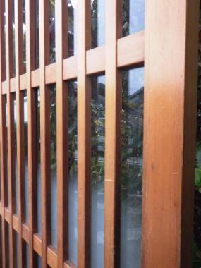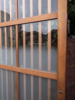 カラカラカラ…と音を立てて開けたくなるレトロなデザインの玄関戸です。触った感じは、それほど古びておらず、お掃除しやすそうな扱いやすい素材感です。曇りガラスから上に向かってだんだん透明になるグラデーションのガラスが使われています。