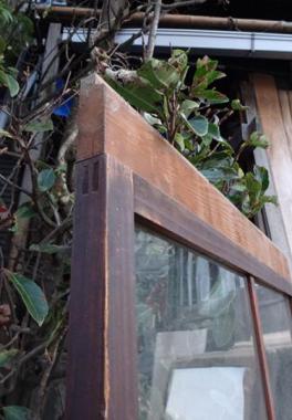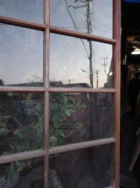 よれた透明ガラスが使われています。古い時代のものならではの味わいがあります。上桟は、かさ上げした跡が見られます。