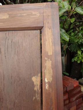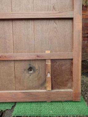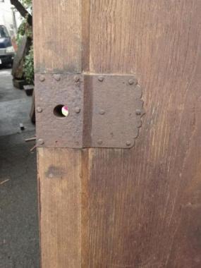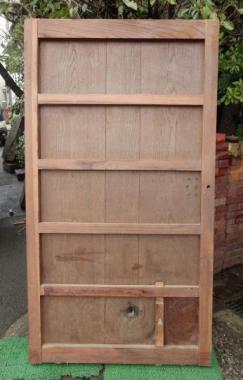 枠と板の間に隙間が見られます。栗材の立派な蔵戸です。