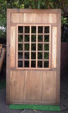 クリとケヤキが使われた蔵戸です。もともとついていた網を外し、ガラスを入れられる形にリメイクしてあり、再利用しやすくなっています。部材ごとの経年が異なり、それもまた一興なお品です。 高さ1,747mm幅987mm厚み44mmです。 詳細お問い合わせください。