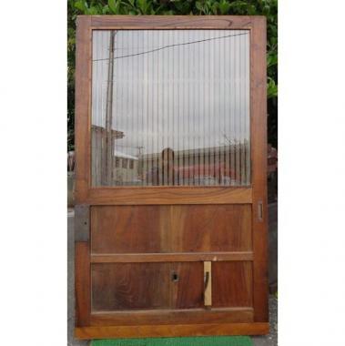 ガラス付きの珍しい蔵戸です。下の部分、既に高さ調整がしてあり、 すぐ使われる予定でしたが、縁あって当店にやってきました。 木目も美しい一品。 高さ1,850mm幅1,113mm厚み40mmです。 詳細お問い合わせください。