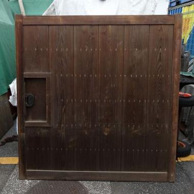倉庫で使われていた趣のある蔵戸。取っ手のデザインがおしゃれです。 こちらは、内戸と外戸のセット販売になります。 外戸:高さ1,790mm幅1,780mm厚み50mm 内戸:高さ1,800mm幅1,775mm厚み50mmです。