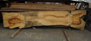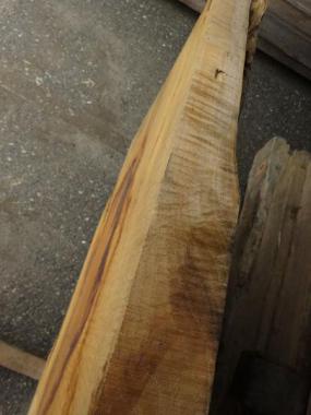 木のそのままの形を残すユニークな木材です。幅の木表寸法は、末口610mm、中間615mm、元口890mmです。