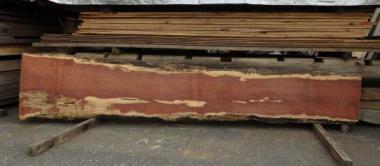 細やかな木目が入りながらも遠目にみると静謐さも感じられる魅力的な材です。表面は製材済。幅の木表寸法は、末口430mm、中間450mm、元口650mmです。