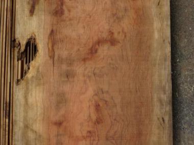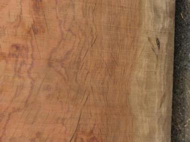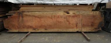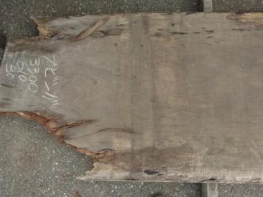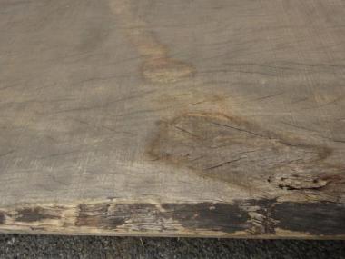 現状は端のほうに割れなどがみられて荒々しい形状です。このディテールをのこすも良し、削るも良しかと思います。寸法は割れている個所を除いて計測したものです。幅の詳細は、末口760mm、中間700mm、元口810mmです。