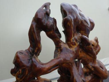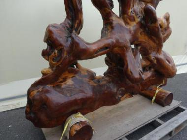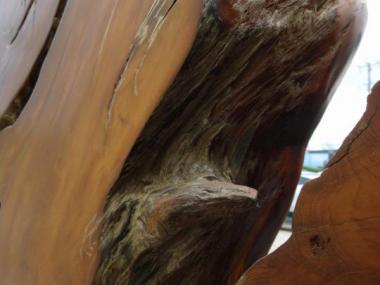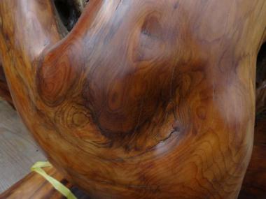 動きがあって荒々しい部分がありつつもどこか神聖さを感じるようなかたちです。つるつるとした表面は木目の表情だけでなく触り心地すらも楽しめそうです。立体で、でこぼこがありますので、寸法はおよそになります。足がついており自立します。存在感があります。