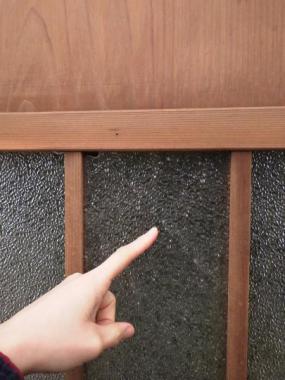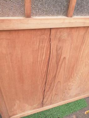 わけあり品。板に割れがあるため。ガラスはダイヤガラスですが、欠け、割れが見られます。腰が高くすっきりとした印象です。