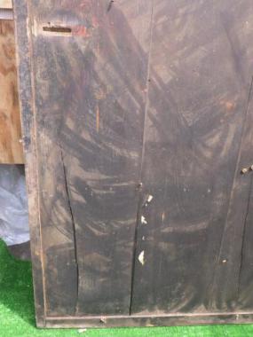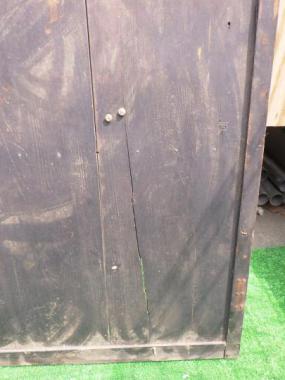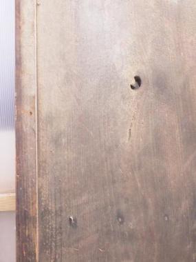 わけあり品。穴や板割れなどの傷みが見られるため。引き手もありません。しかし、大変古いものでこのような味わいはなかなか出せません。修理やアレンジを加えて長く付き合っていくのもおすすめです。