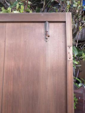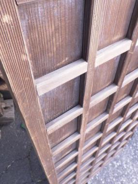 頑丈で重厚な雰囲気の立派な格子板戸です。上下に鍵もついています。