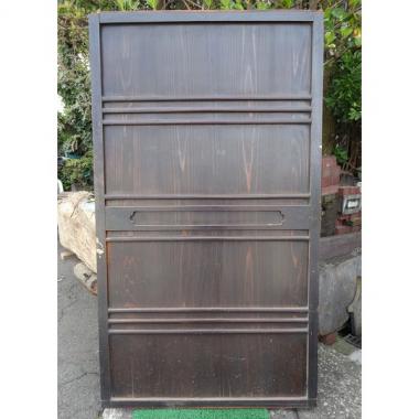 スギ材の板戸です。落ち着いた色合いです。 裏面には、シンプルな装飾があります。 高さ1,715mm幅975mm厚み28mmです。 詳細お問い合わせください。