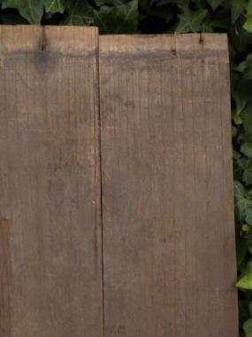 地下につながる床板として使われていたので蓋のような構造になっています。材質はケヤキです。平行四辺形のようなかたちもユニークです。厚みは下駄を含むと55mmになります。