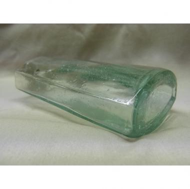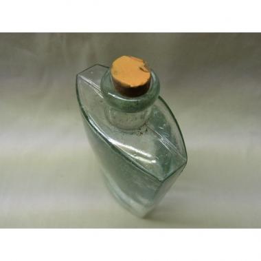 栓のついた小さなビンです。ガラスの厚みはまちまちで、微かに歪んでいる形。 大量生産ではなかなか見られなくなった味わい深い一品です。 高さ107mm幅50mm厚み25mmです。