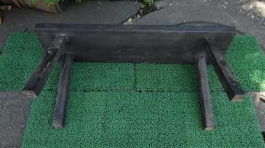 広葉樹の材で、小ぶりながらも、頑丈なつくり。 花台としては、もちろんのこと、ちょっと腰掛けても平気です。 何とでも相性の良さそうな色合いです。 高さ335mm幅760mm奥行き190mmです。 詳細お問い合わせください。