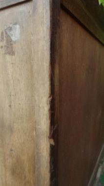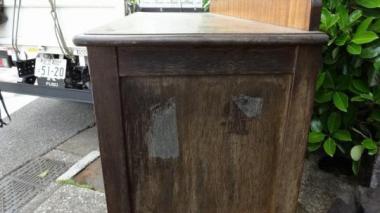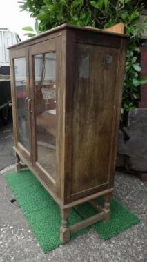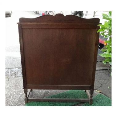 足付きの書棚です。 足は、取り外し可能です。 内部天板仕切りが付いています。お好きな高さで調整可能です。 扉の開閉も現在のところ良好です。 キズや傷みなど以下の写真にてご確認ください。 高さ(天辺の曲線部95mm)830mm(足215mm)×幅925mm奥行き345mmです。 詳細お問い合わせください。