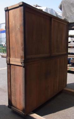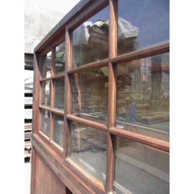 高さ1,775mm 幅1,677mm 奥行き420mmです。職人の手で伸ばされたガラスがはめ込まれており、ガラスの歪みが味わい深い一品です。 千葉県の柏より入手致しました。 参考までに後ろ側の写真を載せておきます。 こちらもあわせてご確認ください。