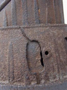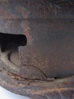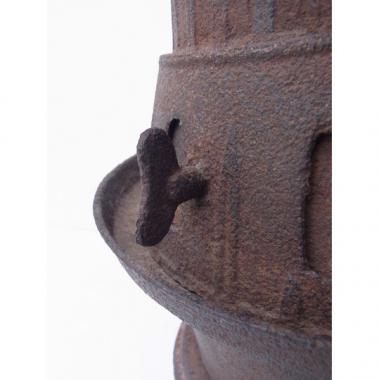 鉄製のどっしりと構えた雰囲気は、レトロならでは。少々、割れている部分がございますが、核の部分はしっかりとしています。 戦前のものと思われます。 寒い冬にみんなで囲みたい一品。 高さ410mm直径300mmです。 詳細お問い合わせください。
