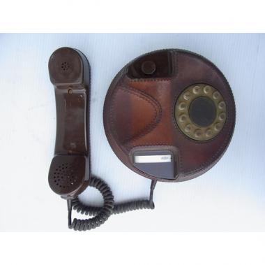 イタリア製の古い電話機です。 文学科の大学教授のお宅でつかわれていたものです。 電話なのに、革?という意外性が面白い一品です。 革ですが、おそらく合皮製だと思われます。 高さ85mm幅220mm奥行き170mmです。 詳細お問い合わせください。